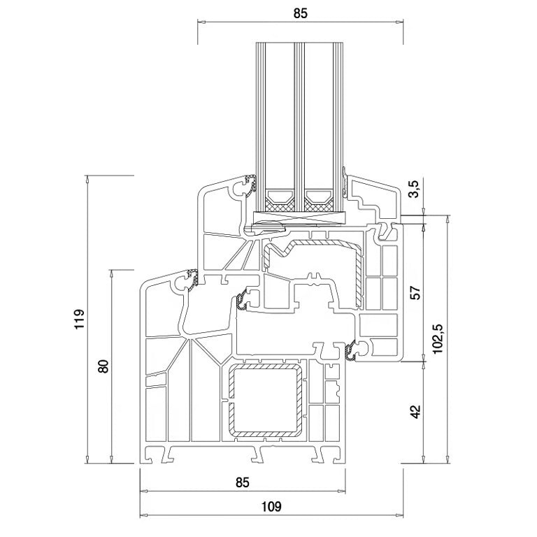 It utilizes a generous 85 mm (3.35 inches) installation depth and a robust 6-chamber profile to achieve outstanding energy efficiency.