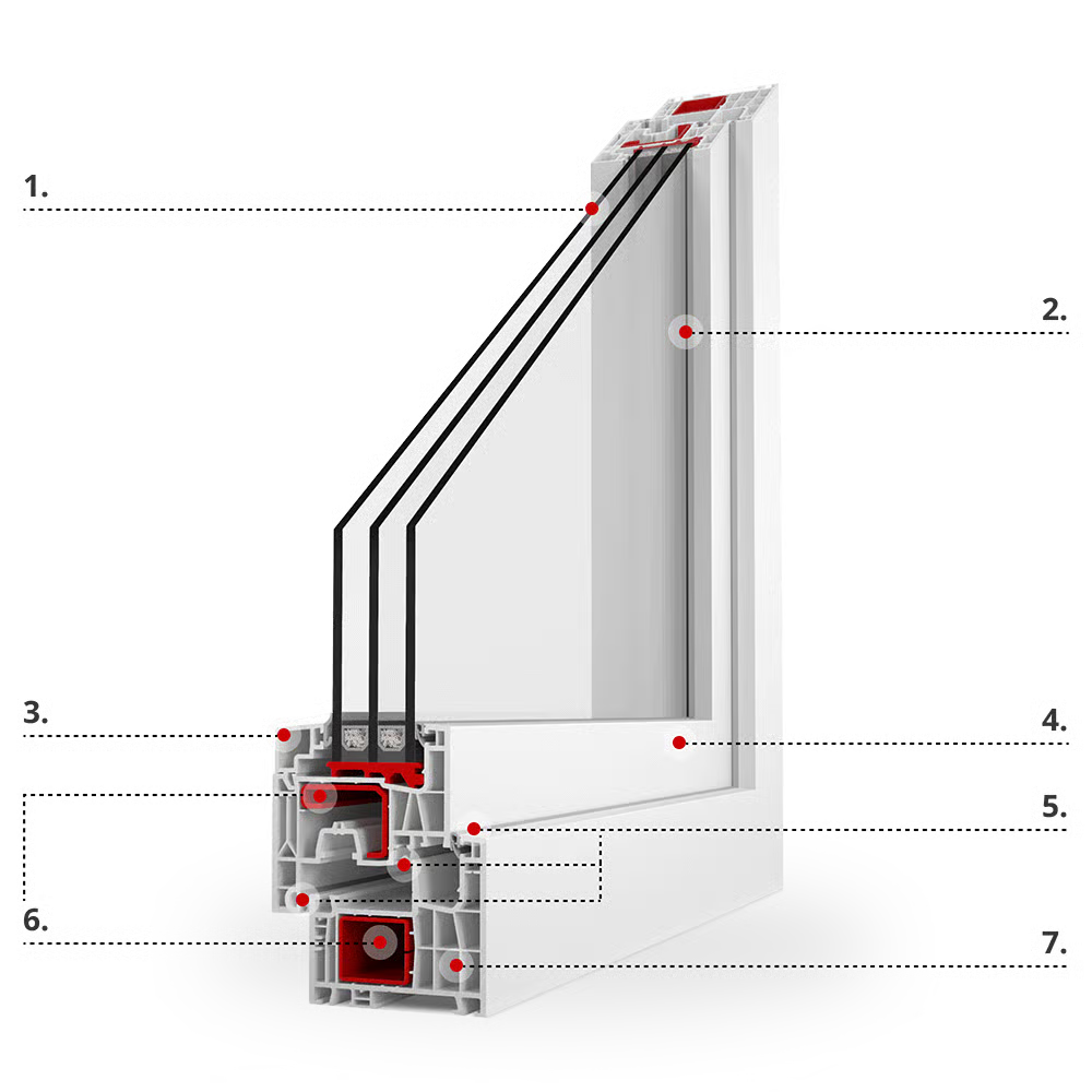 Triple-Seal System: The key energy feature is the Center Gasket (MD) system, which uses three continuous sealing levels to create a "dry chamber" for the hardware. This significantly improves thermal and acoustic insulation and protects the hardware from moisture.