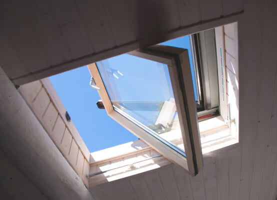Roof escape windows are available with wood or PVC frames depending on insulation and maintenance requirements. The sash is designed to open fully via hinged or swing mechanisms to allow safe passage onto the roof.