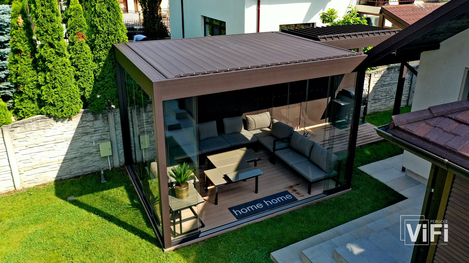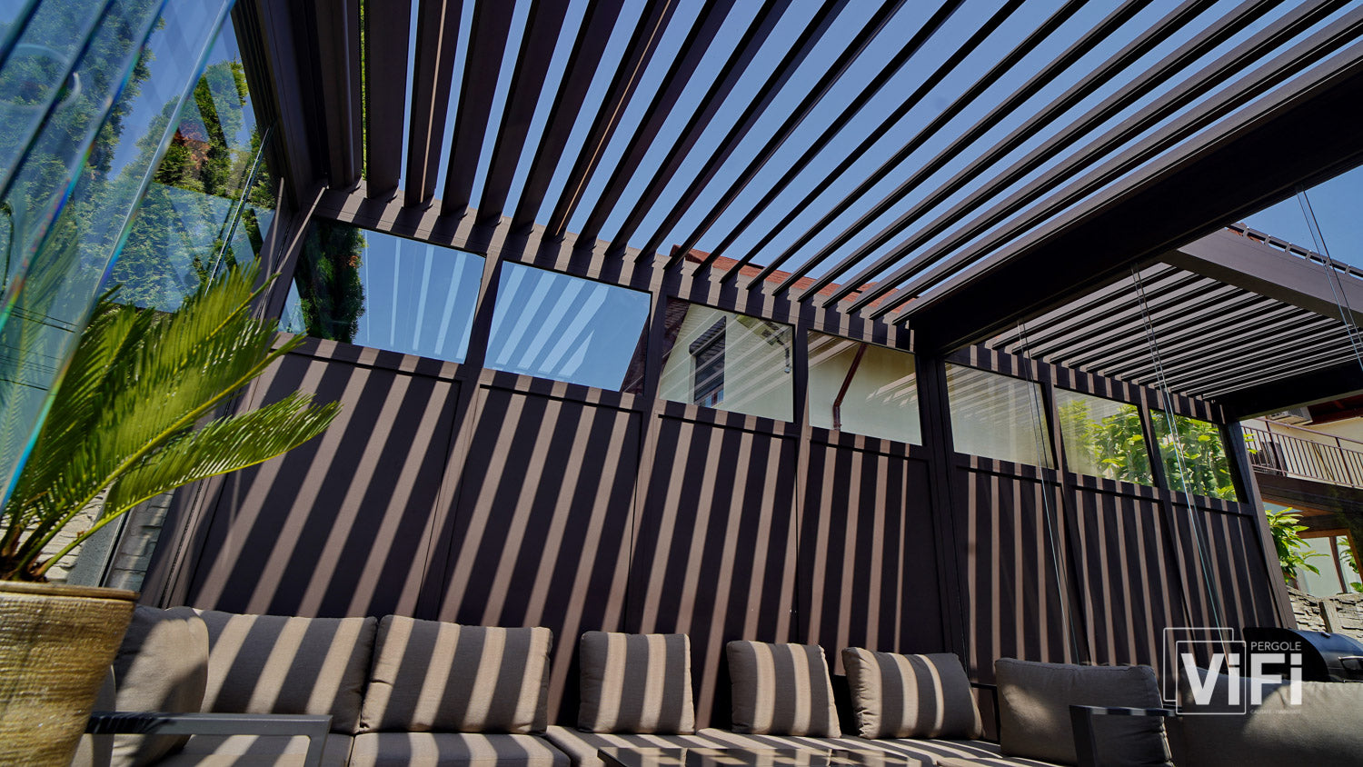 Transform your outdoor space with the Vi-Fi Mykonos Bioclimatic Pergola.