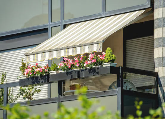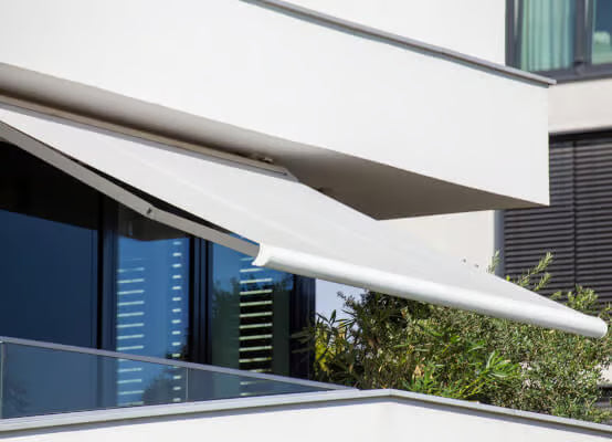 Elegant Awnings (Markisen): The classic, flexible shading solution for your balcony or terrace. Available in Open, Semi-Cassette (Premium), or Full-Cassette (Exclusive) designs. The Full-Cassette models offer complete protection for the fabric and arms, ensuring maximum longevity and protection from the weather