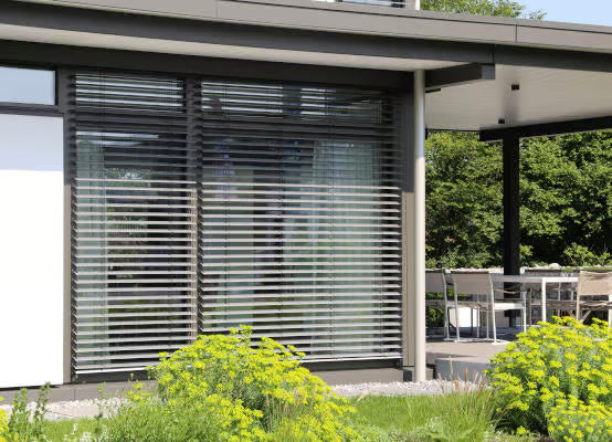 Innovative Venetian Blinds (Raffstores): These elegant aluminum external blinds allow for flexible light control by adjusting the angle of the slats. They offer excellent glare and heat protection while preserving natural daylight and your view outside. Ideal for large windows and available with premium Z-shaped slats for superior darkening