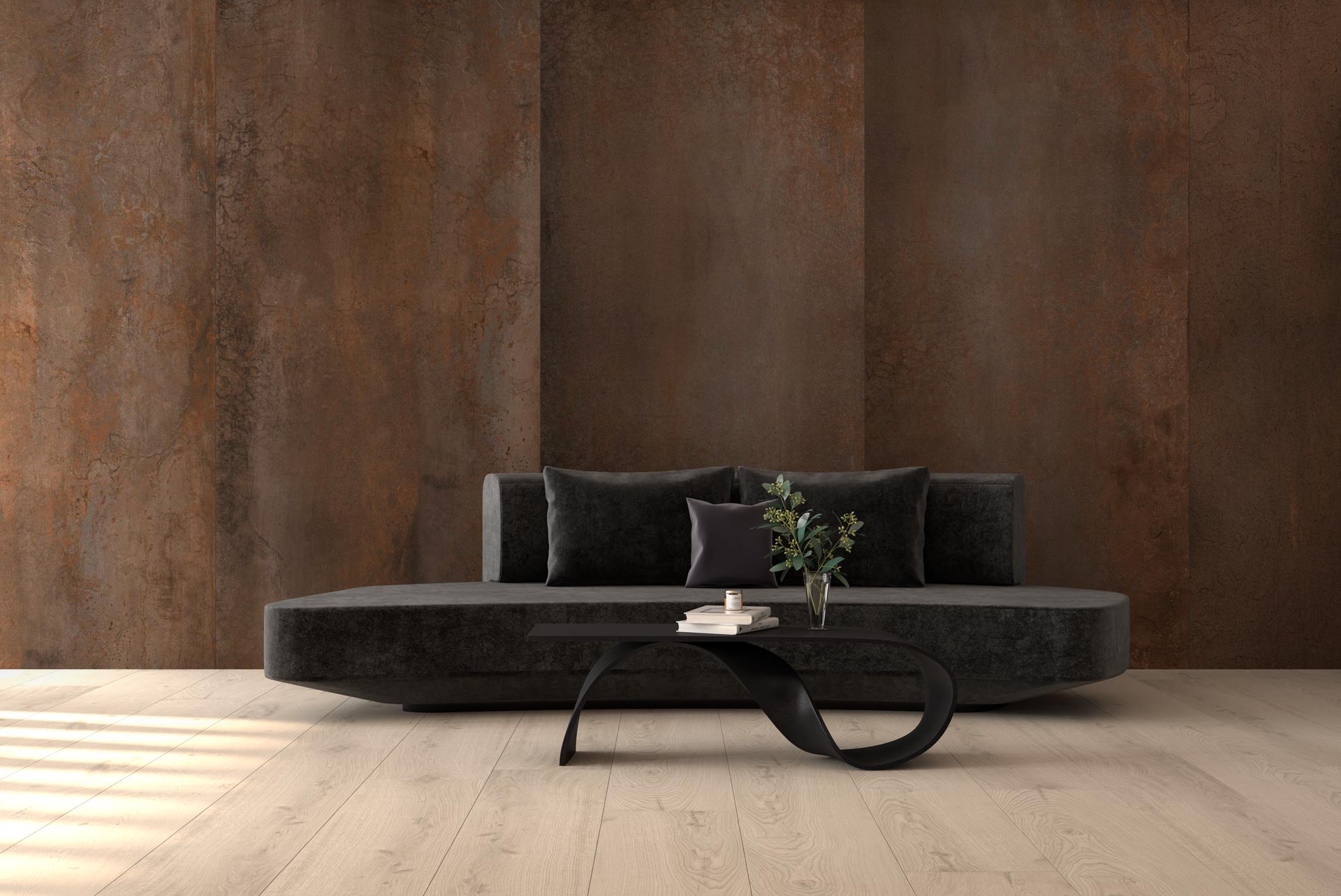 BEAM RUSTEEL is produced as oversized porcelain slabs with a matte surface finish that enhances the authentic rusted-metal appearance.