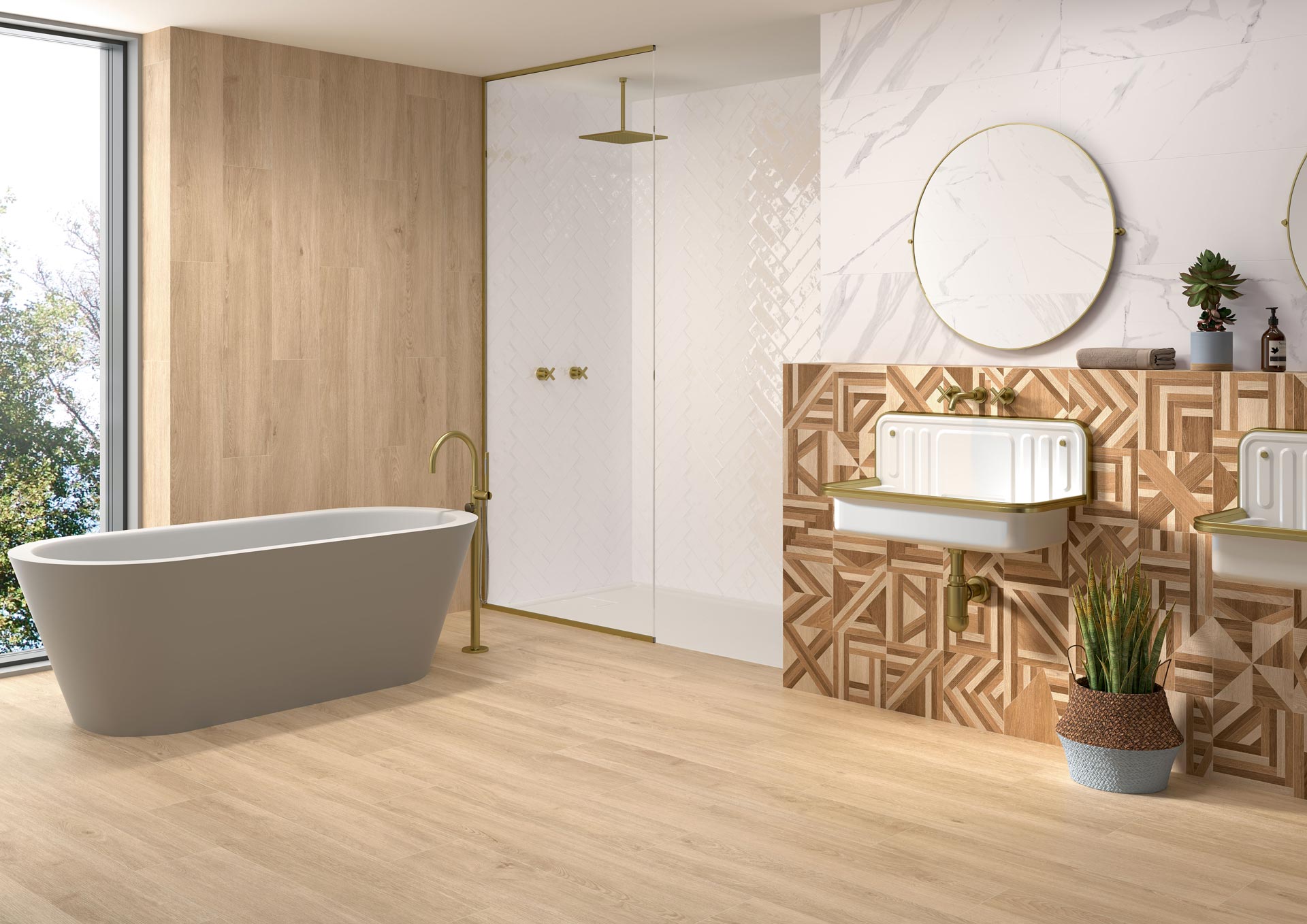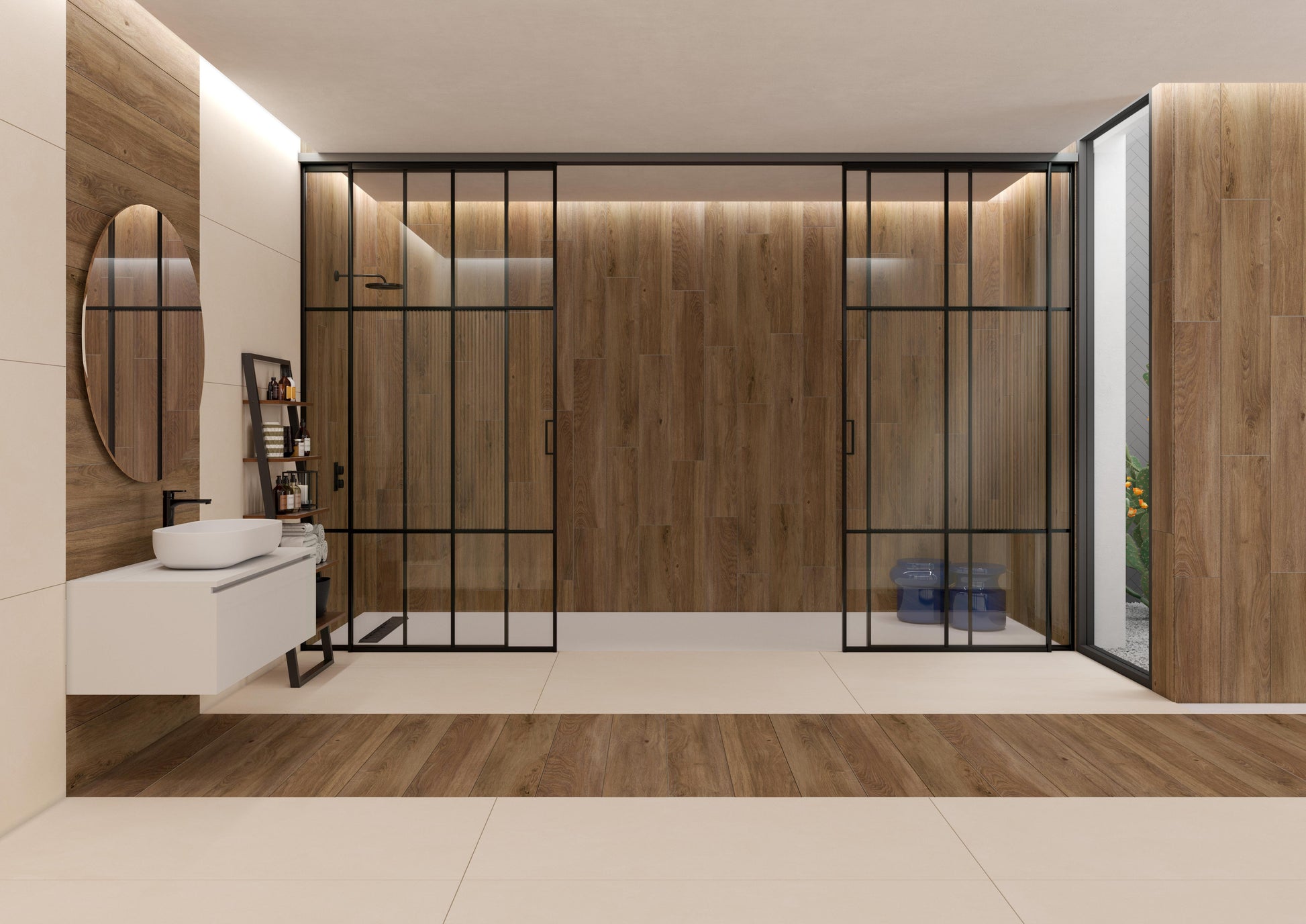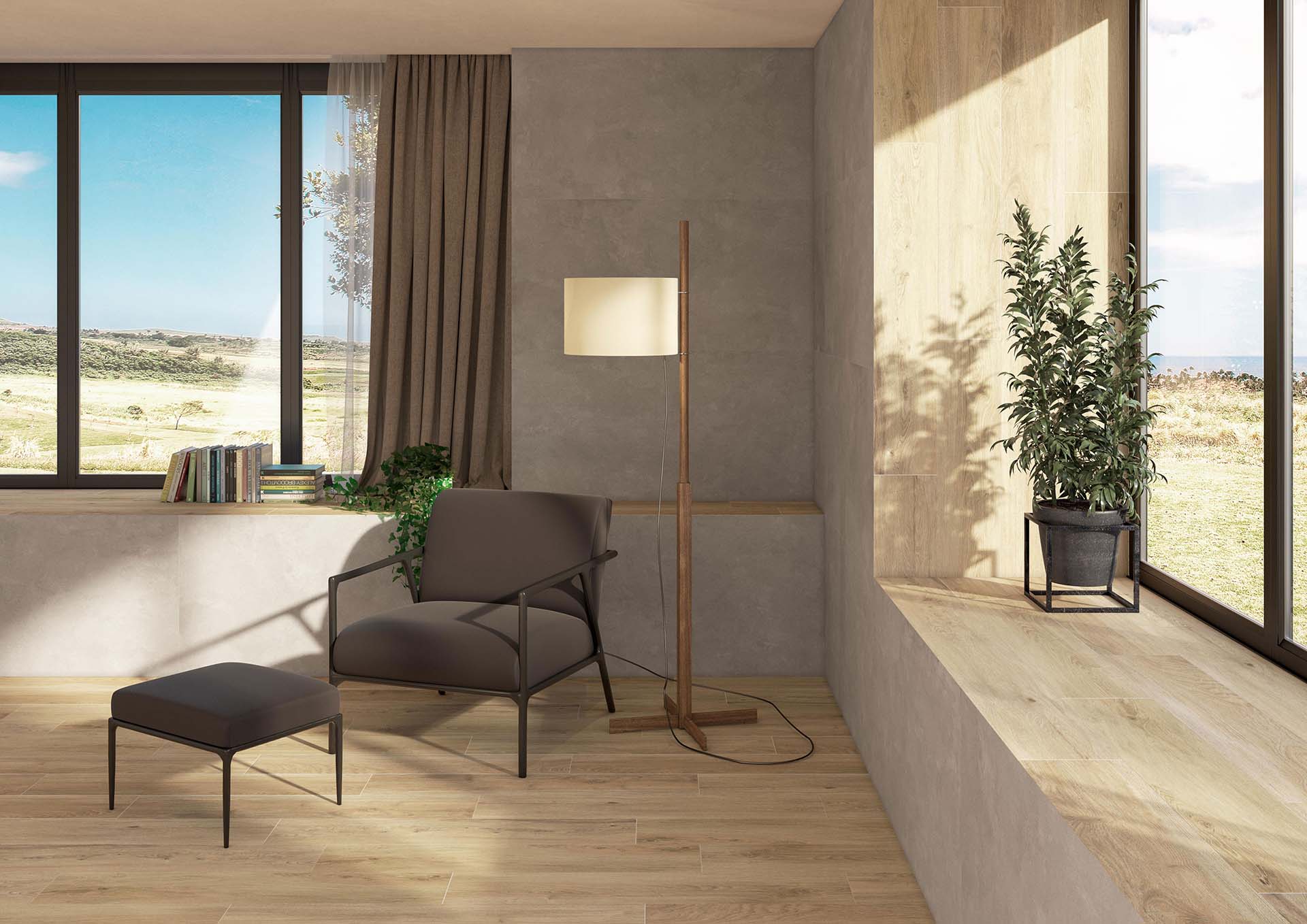 BERNA is a wood-look porcelain tile collection inspired by natural alpine wood textures.