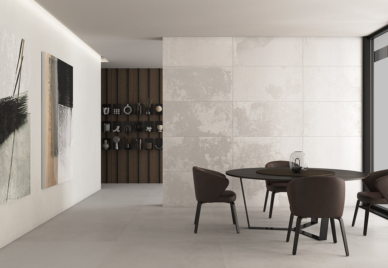 The collection is suitable for contemporary residential, commercial, and mixed-use interiors requiring a strong architectural surface presence.
