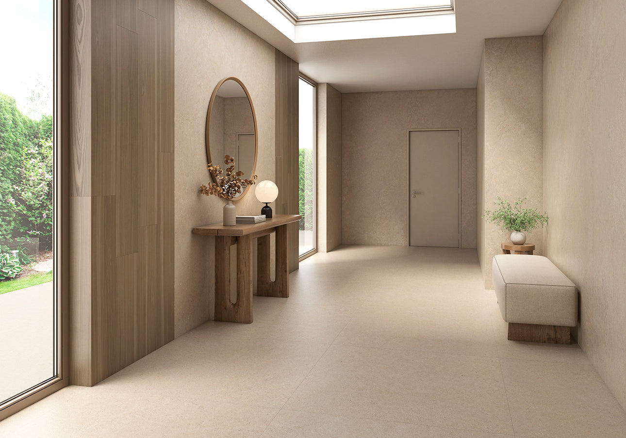CALCARE is a limestone-inspired porcelain tile collection designed to create calm, elegant, and continuous architectural surfaces. With subtle mineral veining and natural stone texture, it delivers the warmth of limestone with the durability and easy maintenance of porcelain stoneware. The collection spans multiple tile, slab, decor, and mosaic formats, allowing complete design flexibility across floors and walls.